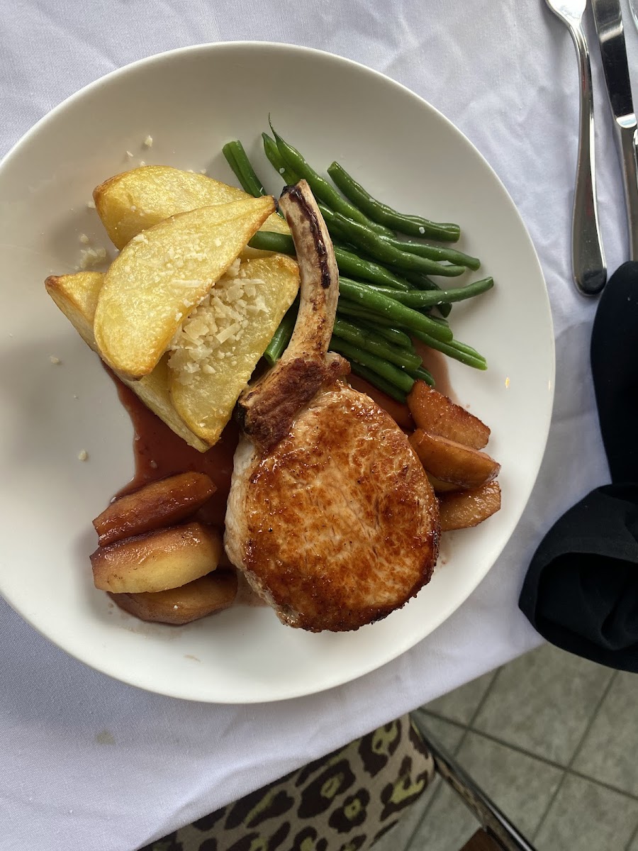 Organic apples,port wine reduction, roasted parmesan potatoes, sherry wine infused haricot verts.